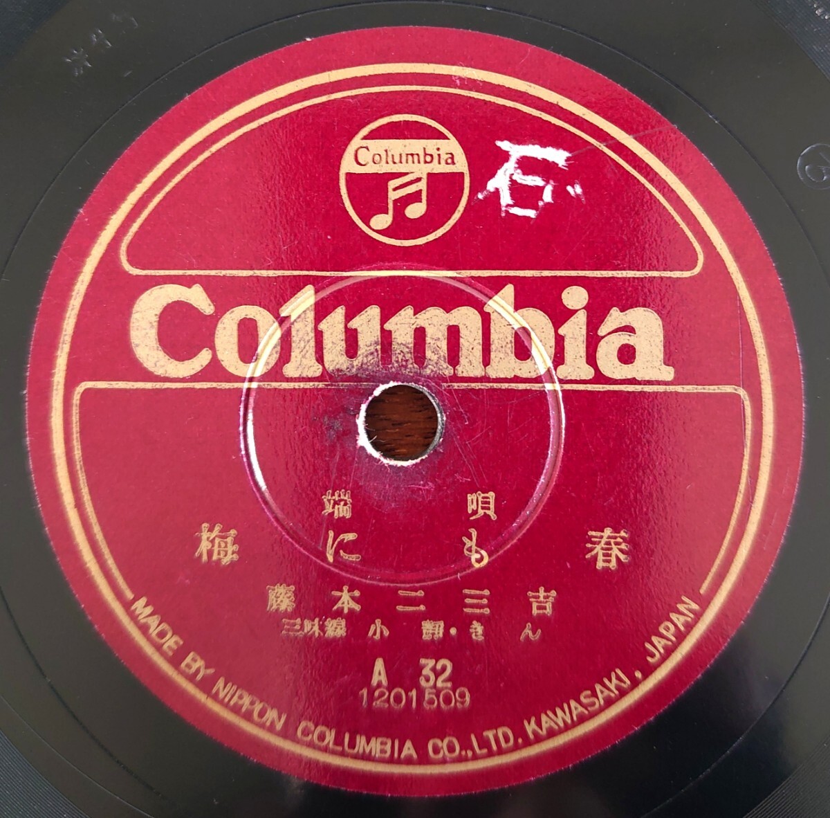 - 【SP盤レコード】Columbia A32 端唄/梅にも春/春雨/藤本二三吉 三味線:小靜・秀葉 囃子入