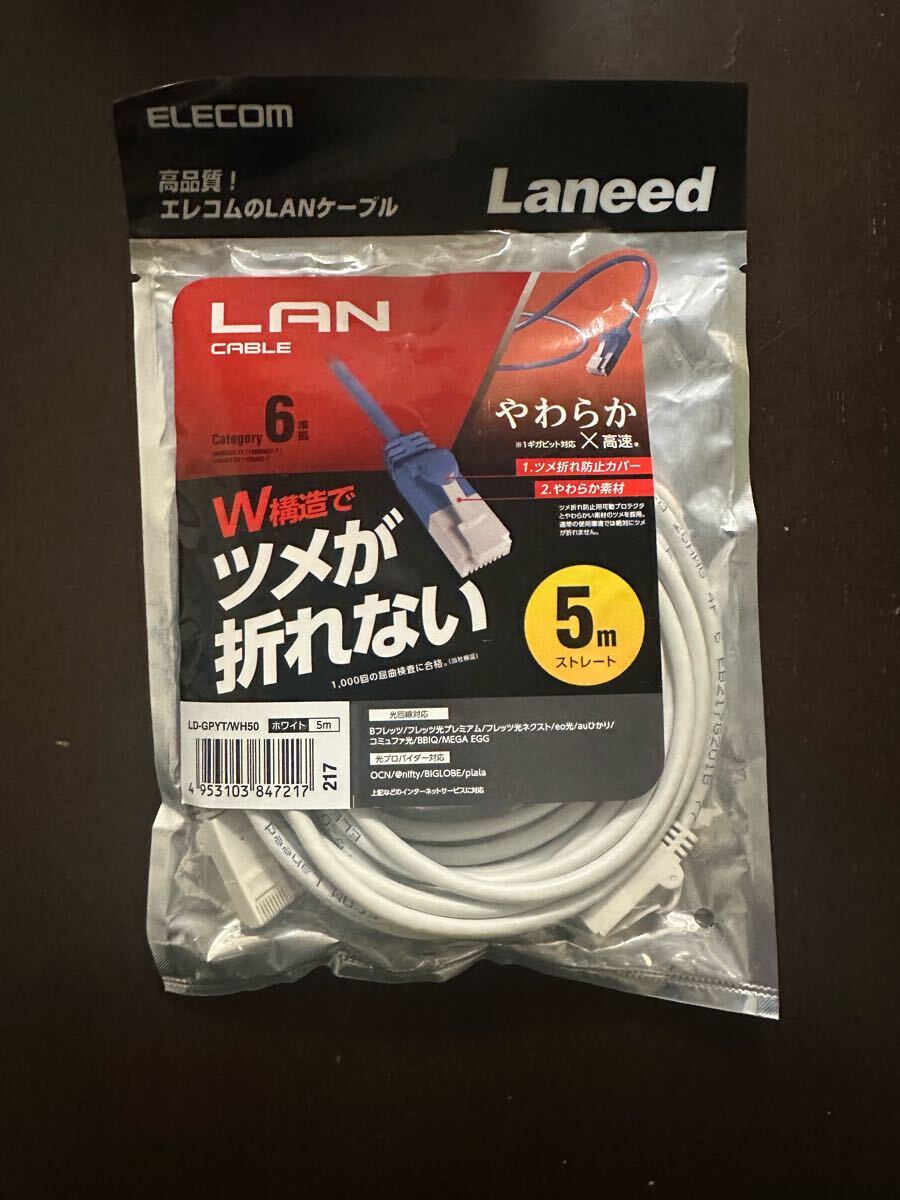 > ELECOM エレコム Laneed CAT6 5m 5.0m ツメが折れない ツメ折れ防止 やわらか LANケーブル LD-GPYT/WH50 新品未使用品