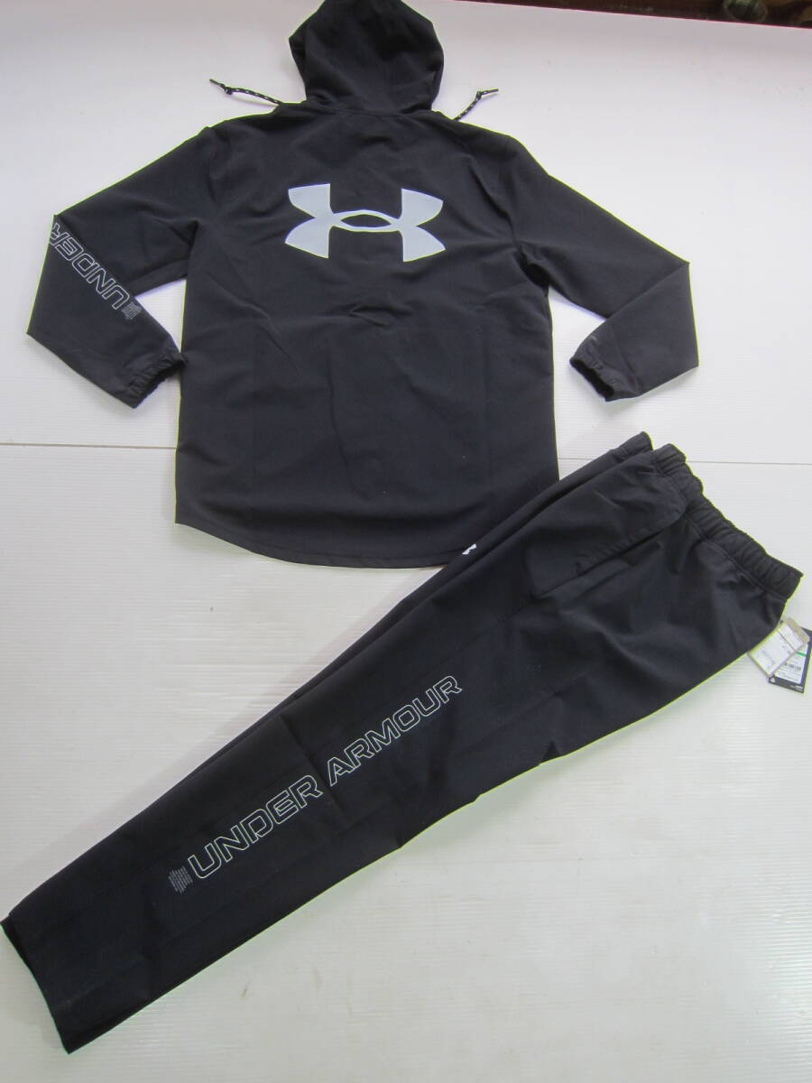 > 新品◆アンダーアーマー 防寒 保温 起毛裏地 ウォームアップ パーカー ジャケット & パンツ 上下セット L 黒 スウェット トレーニング / M