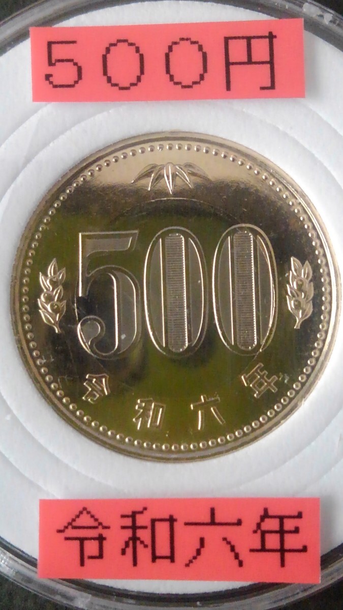 - 令和六年バイカラークラッド五百円貨幣-クッション入りプラスチックコインカプセル入り!-極美品