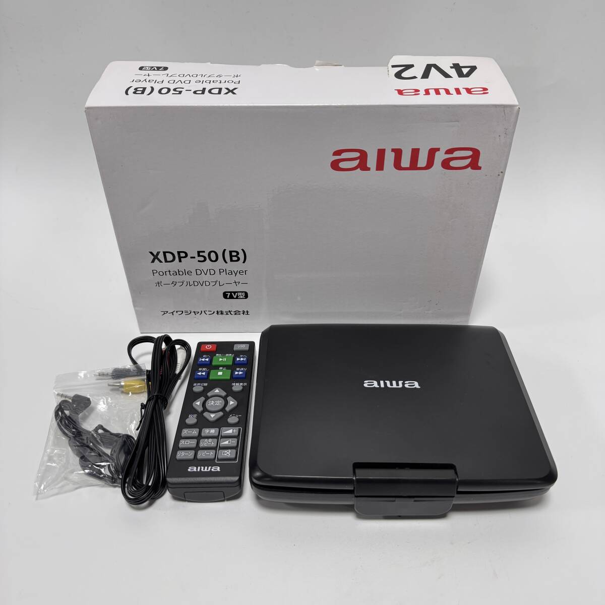 > 【62433Q】aiwa アイワ XDP-50(B) 4V2 ポータブルDVDプレーヤー 7V型 通電動作確認済 ACアダプタ欠品 経年保管品 現状品