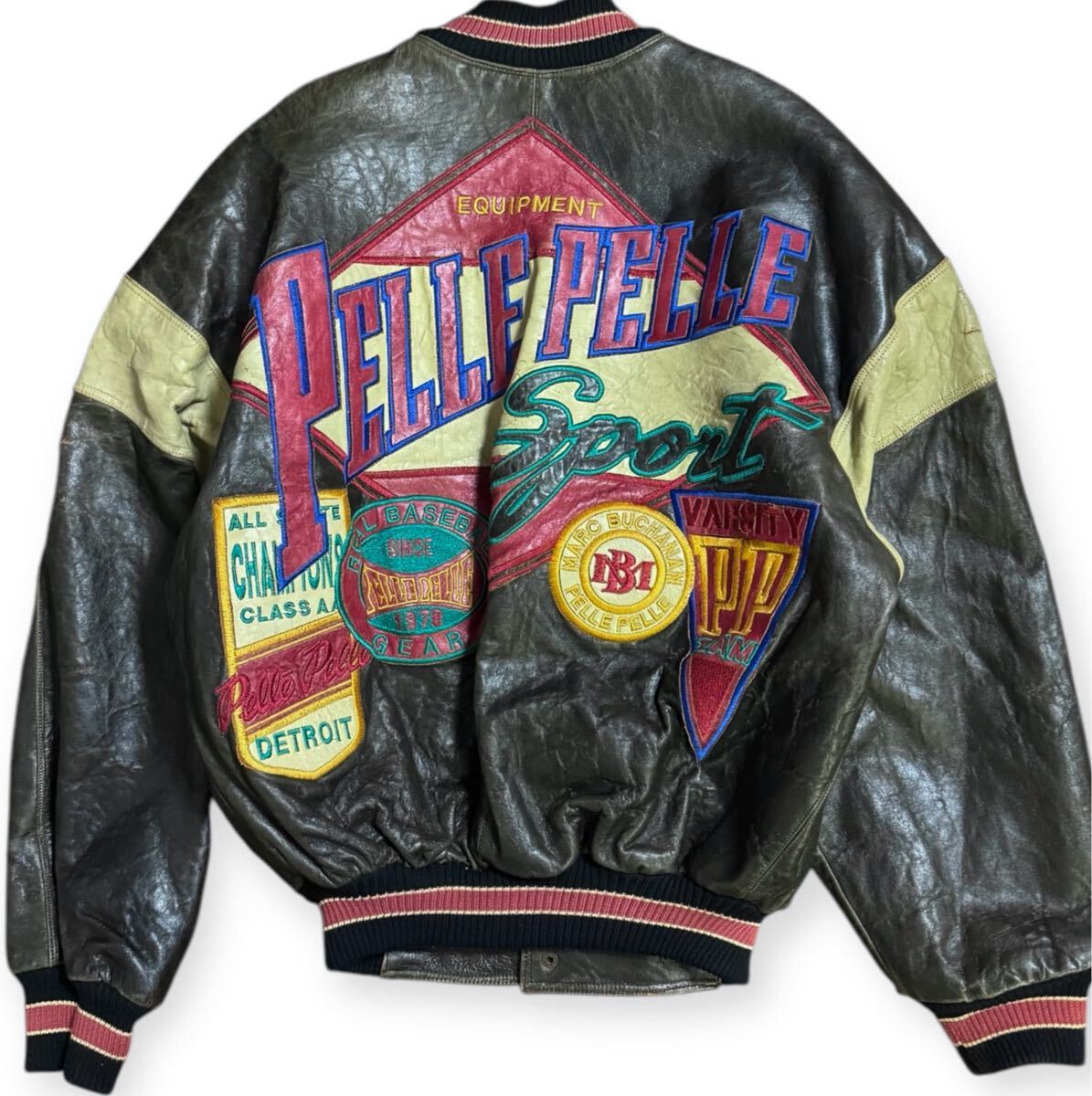 > 雰囲気◎ PELLE PELLE marc buchanan バックロゴ オールレザースタジャン 36 リブライン
