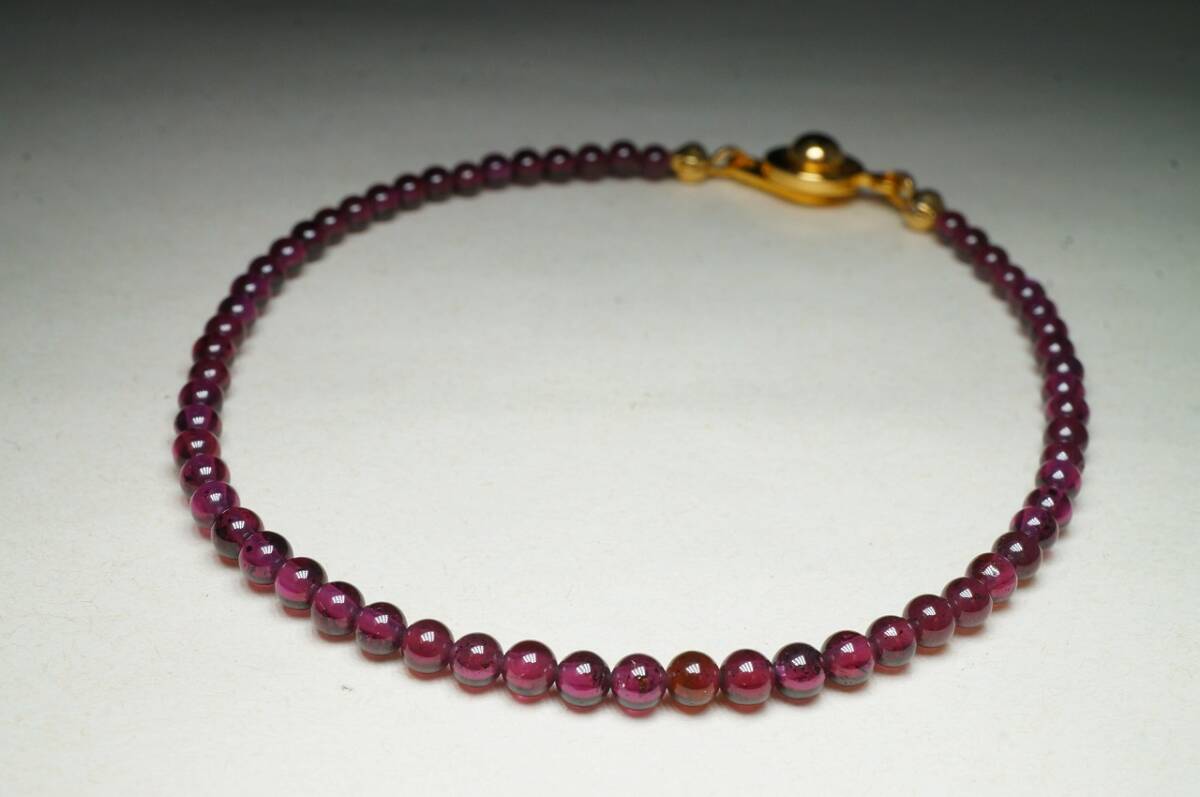 - 【即決特別価格】希少サイズ!色の濃い透明度抜群のナイジェリア産ガーネット3mm研磨丸玉ブレスレット
