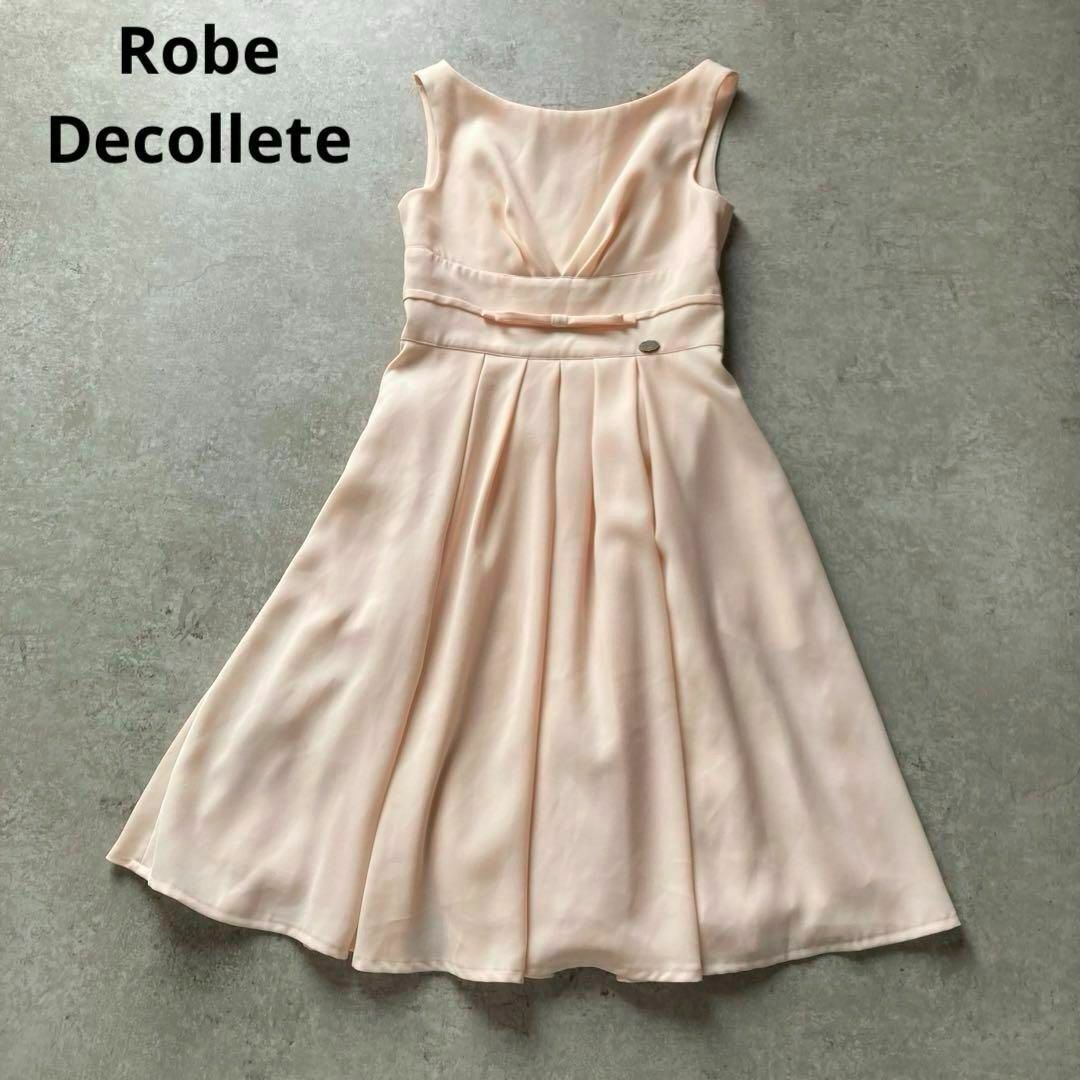 > ローブデコルテ 皇室御用達 ノースリーブフレアワンピース りぼん 日本製 ライトピンク 38サイズ Robe decollete
