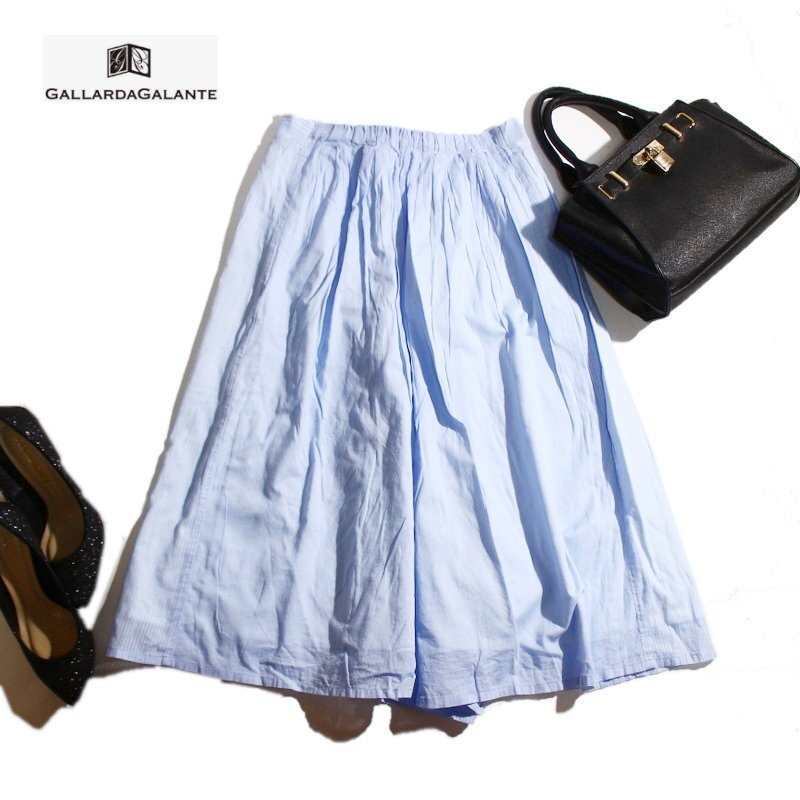 > GALLARDAGALANTE ガリャルダガランテ 春 夏 ナチュラル ほんのり ストライプ 柄 柔らか コットン フレアスカーチョ ミディ 水色 ロング