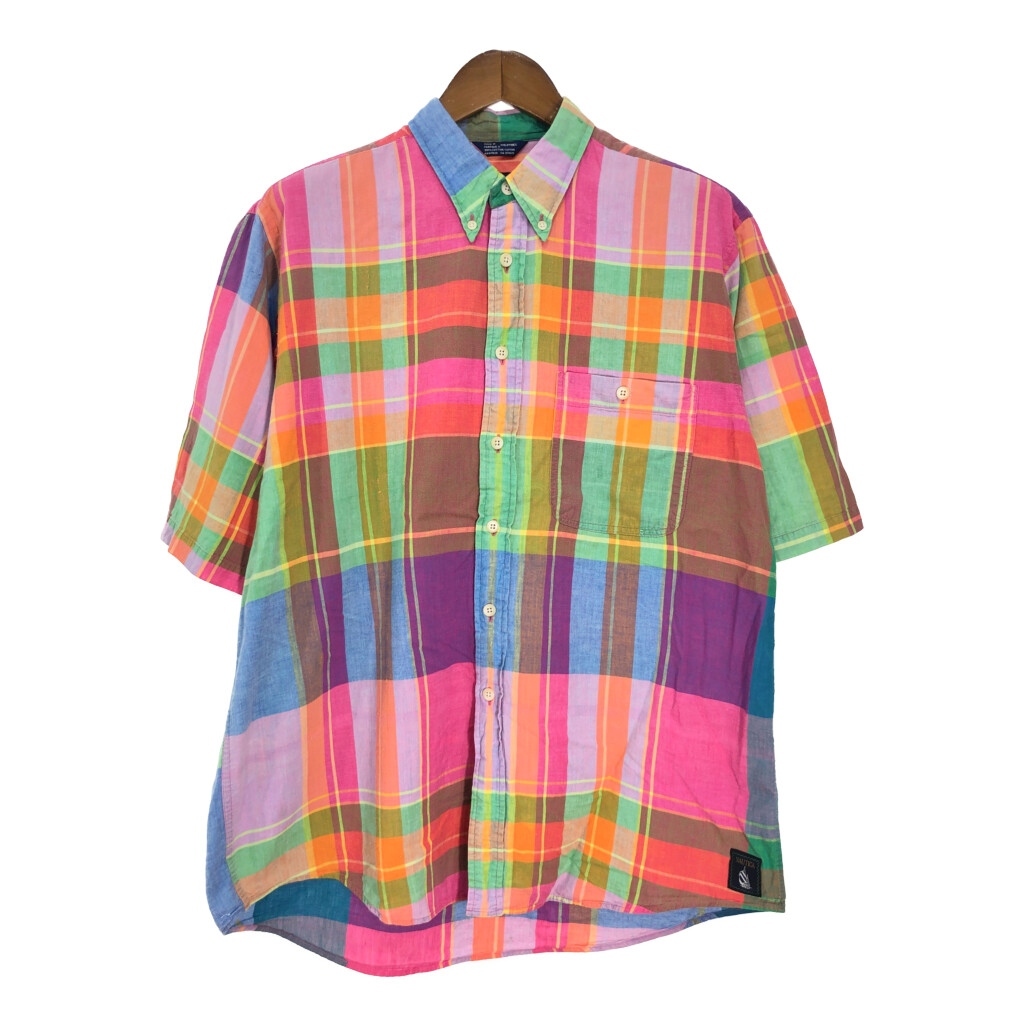 > 90年代 NAUTICA ノーティカ ボタンダウン 半袖シャツ マドラスチェック マルチカラー(メンズ L)中古 古着 T6478