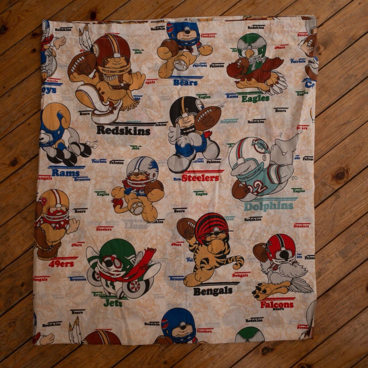 > USAヴィンテージ ベッドシーツ NFL リメイク生地 素材 ナショナルフットボールリーグ キャラクター フラットシーツ アメリカ仕入 B2438