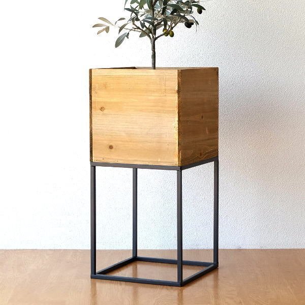 - プランターボックス おしゃれ ウッドボックス 木製 天然木 シンプル アイアンスタンドウッドボックス L 送料無料(一部地域除く) mty7067