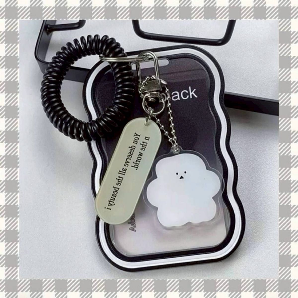 - 推し活 トレカケース カードケース 定期入れ キーホルダー アイドル フォト チェキ パスケース 韓国 ブラック