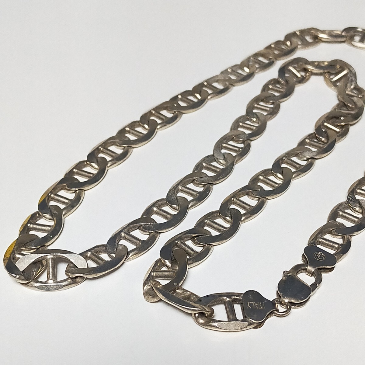 - 925製 125g の超重量級 イタリア製 Italy 12㎜幅 極太 アンカーチェーン ロングネックレス ヴィンテージ OLD silver925/シルバー925