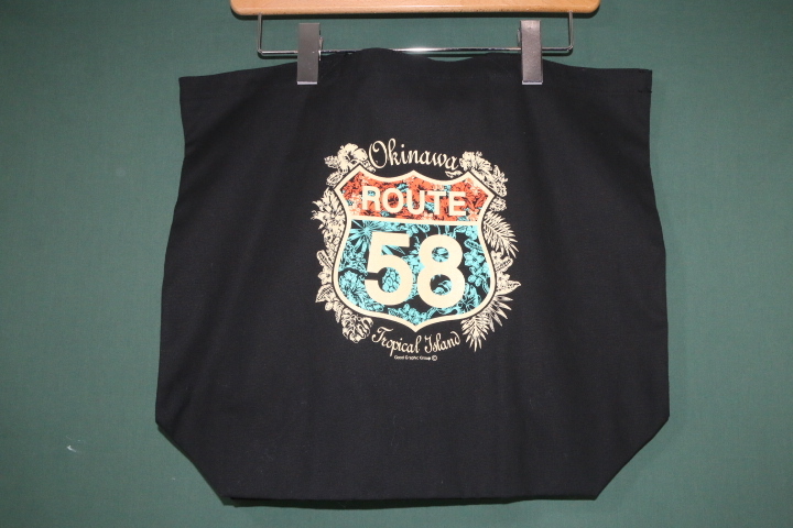 - 沖縄土産 トートバッグ ROUTE 58 国道58号線プリント ブラック
