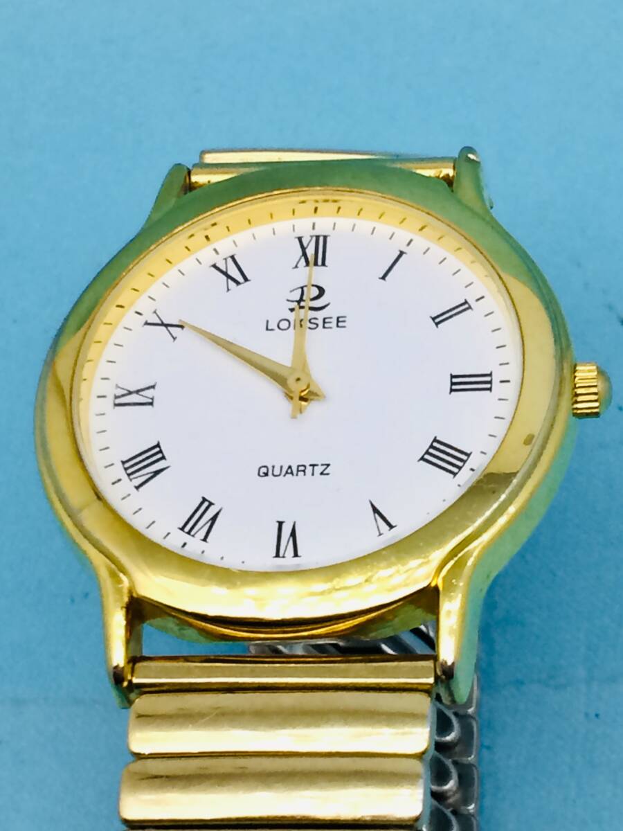> (e03)シンプルな(*'▽')LOKSEE・ロクシー(電池交換済み)シャンパンゴールド・メンズ腕時計USED(送料全国一律185円)素敵な時計です。