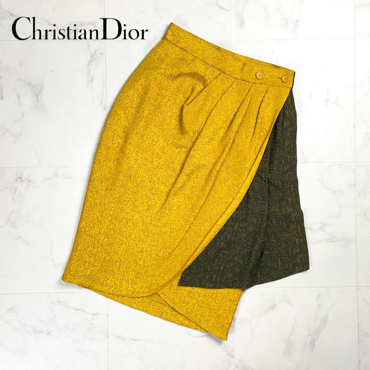- 美品 Christian Dior クリスチャンディオール ラップペンシルスカート 巻きスカート ミモレ丈 黄色 イエロー サイズM*ZC1047