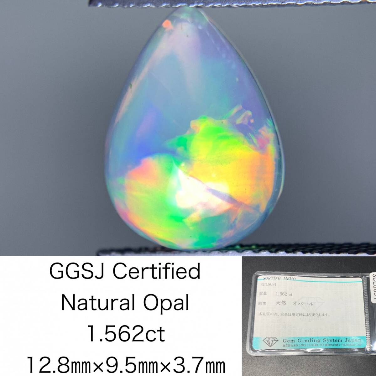 - オパール 1.562ct 宝石ソーティング付き 12.8×9.5×3.7 天然 ルース( 裸石 ) 4590Y