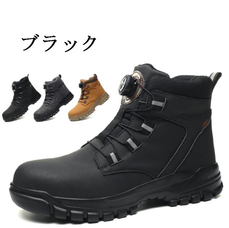 > 安全靴 防水 メンズ ワークブーツ 作業靴 ハイカット 軽量 ダイヤル 鋼先芯 セーフティシューズ ブラック サイズ:28cm