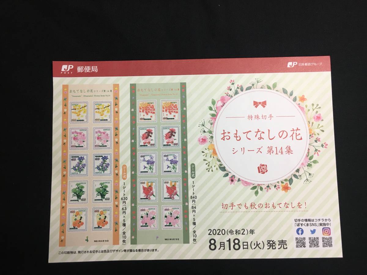 - 切手チラシ 2020.08.18発売 【おもてなしの花 シリーズ第14集】あきらしくイチョウやモミジ りんどう ダリア ケイトウ バラ キク