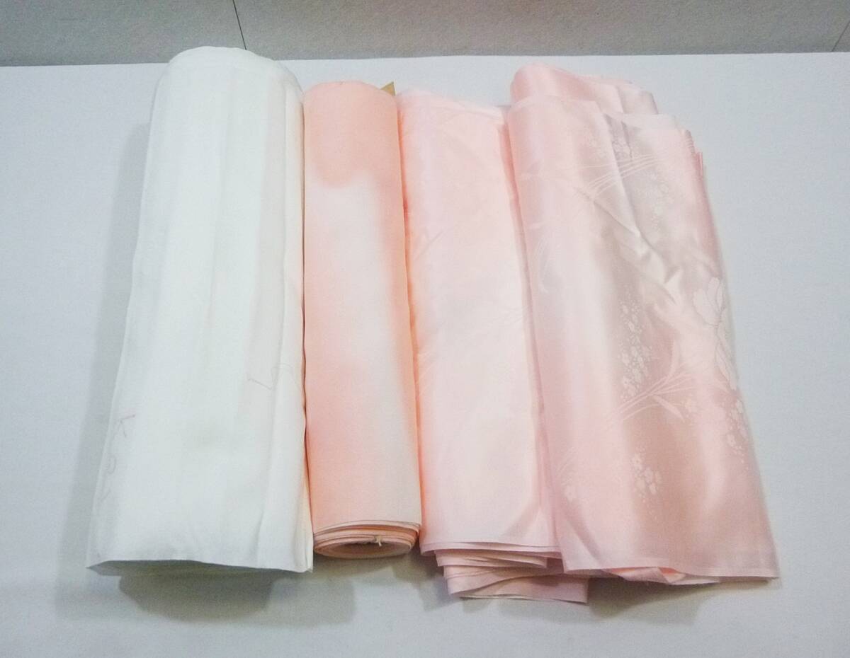 > 《ジャムルK》QKo0403-6◆ポリエステル 反物 まとめ 4点 全約3.6kg 着物 襦袢 リメイク材料 生地 素材 和風 和装 和物 白地 ピンク