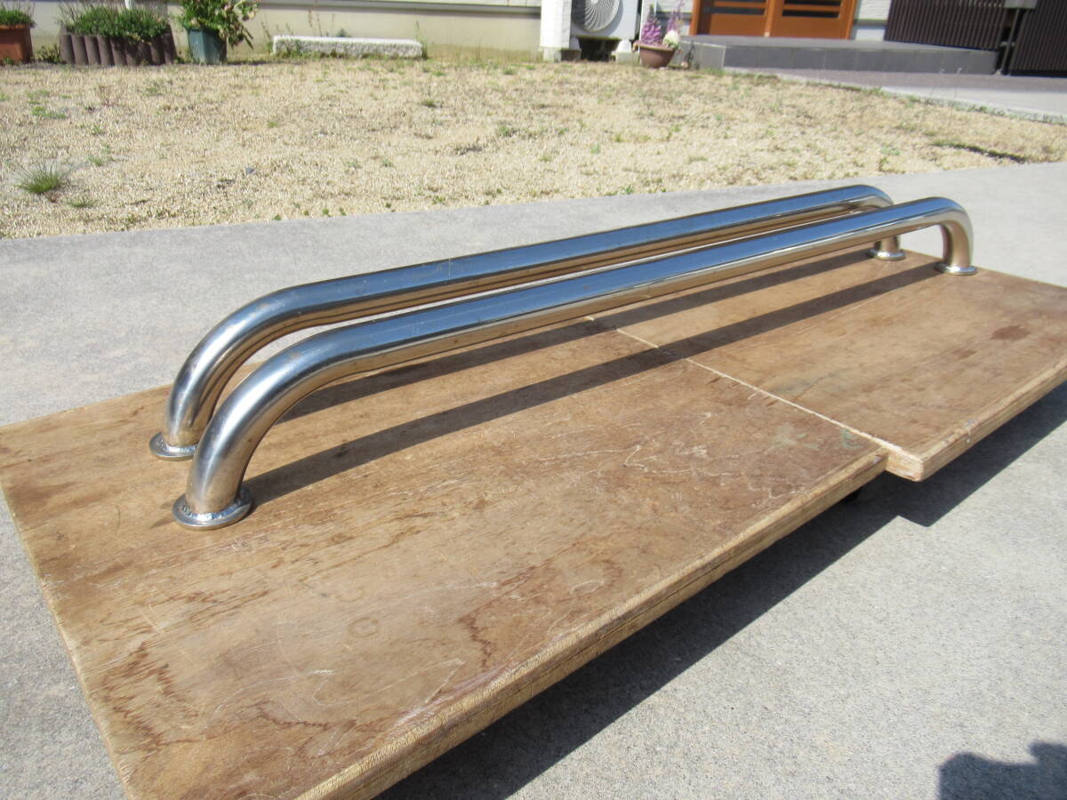 - ステンレス製 手すり2本 長さ約95~98cm×幅約5cm(土台) 高約11cm 軸約φ34mm 中古