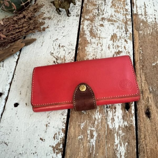 - Ficce Brave フィセブレイブ レザー ウォレット 本革 長財布 小銭入れ付き レッド 赤 ブラウン 茶 中古