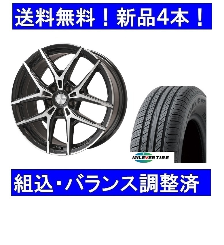 > 16インチ夏タイヤホイールセット新品1台分 VWポロ(AW) 195/55R16&AFG VX ブラックポリッシュ