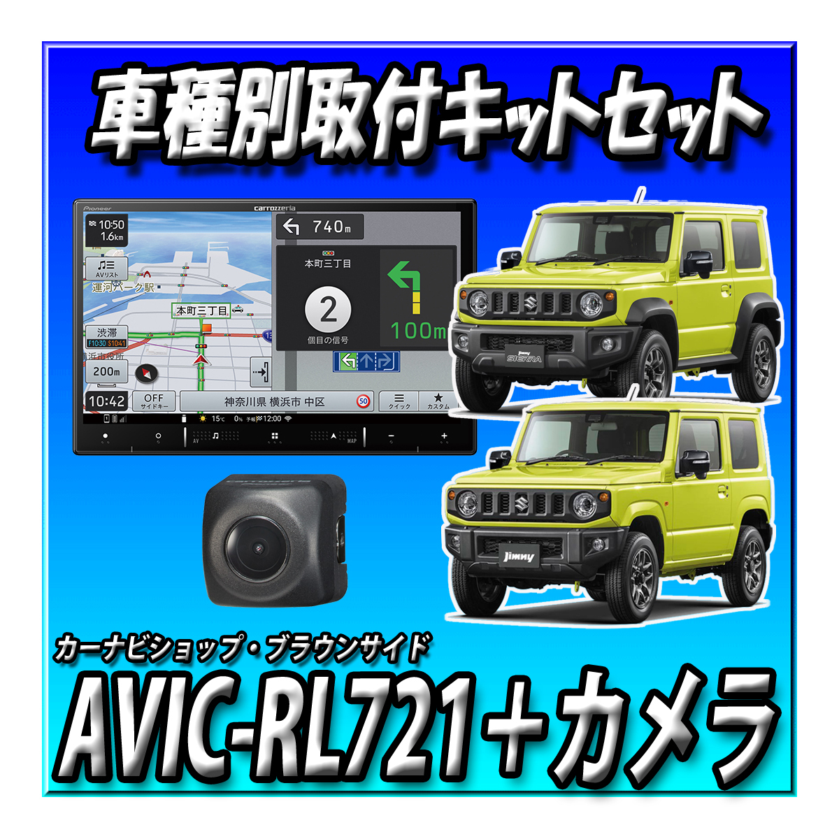 > 【5点セット販売・キャンセラー付】AVIC-RL721+ETC2.0+バックカメラ+ジムニー・シエラ・ノマド用8インチカーナビ取付キット 楽ナビ