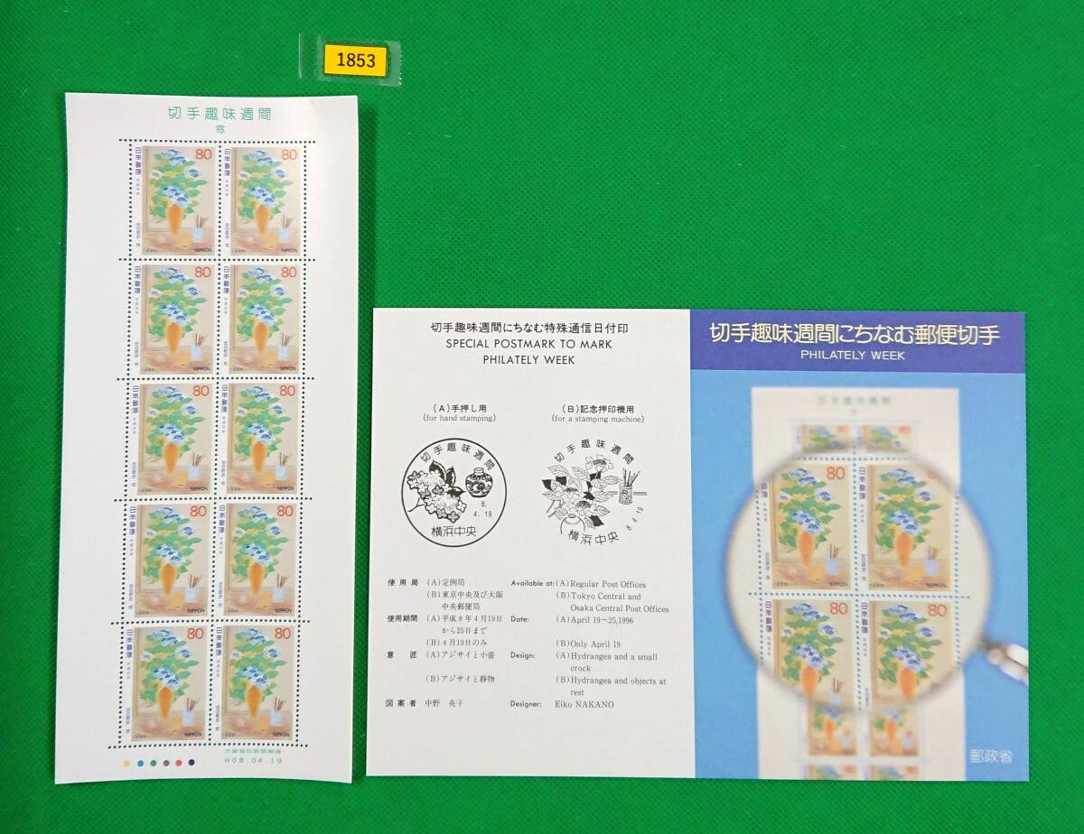 - 即決!/安田靫彦「窓」/切手趣味週間シート/解説書付き/極上美品/NH/VF/OG/1996年/80円10枚1シート/№1853