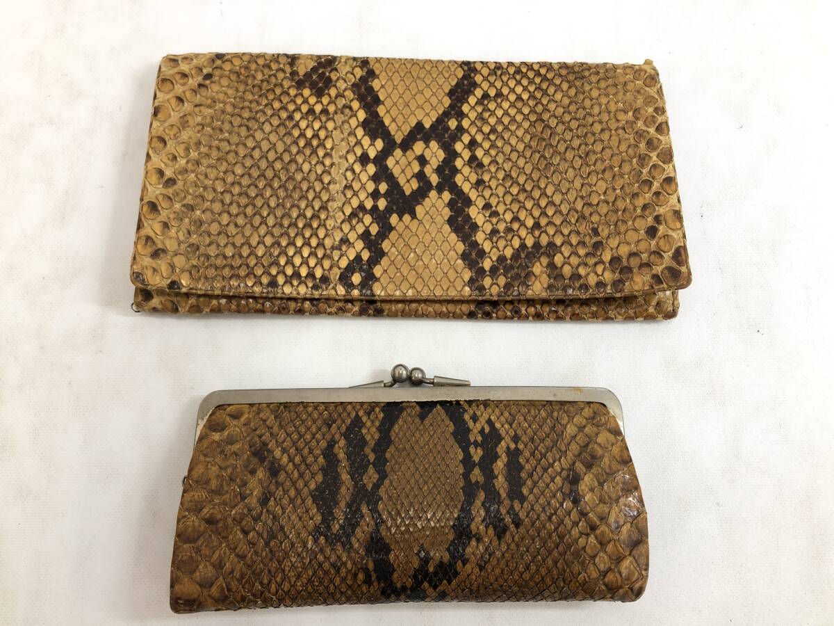 - CL250408-01A/ パイソン柄 財布セット 長財布 がま口 蛇皮 コインケース アンティーク レディース