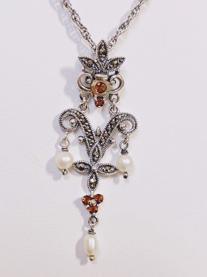 - ☆SV925 パール&シトリン&マーカサイトペンダント付きネックレス☆