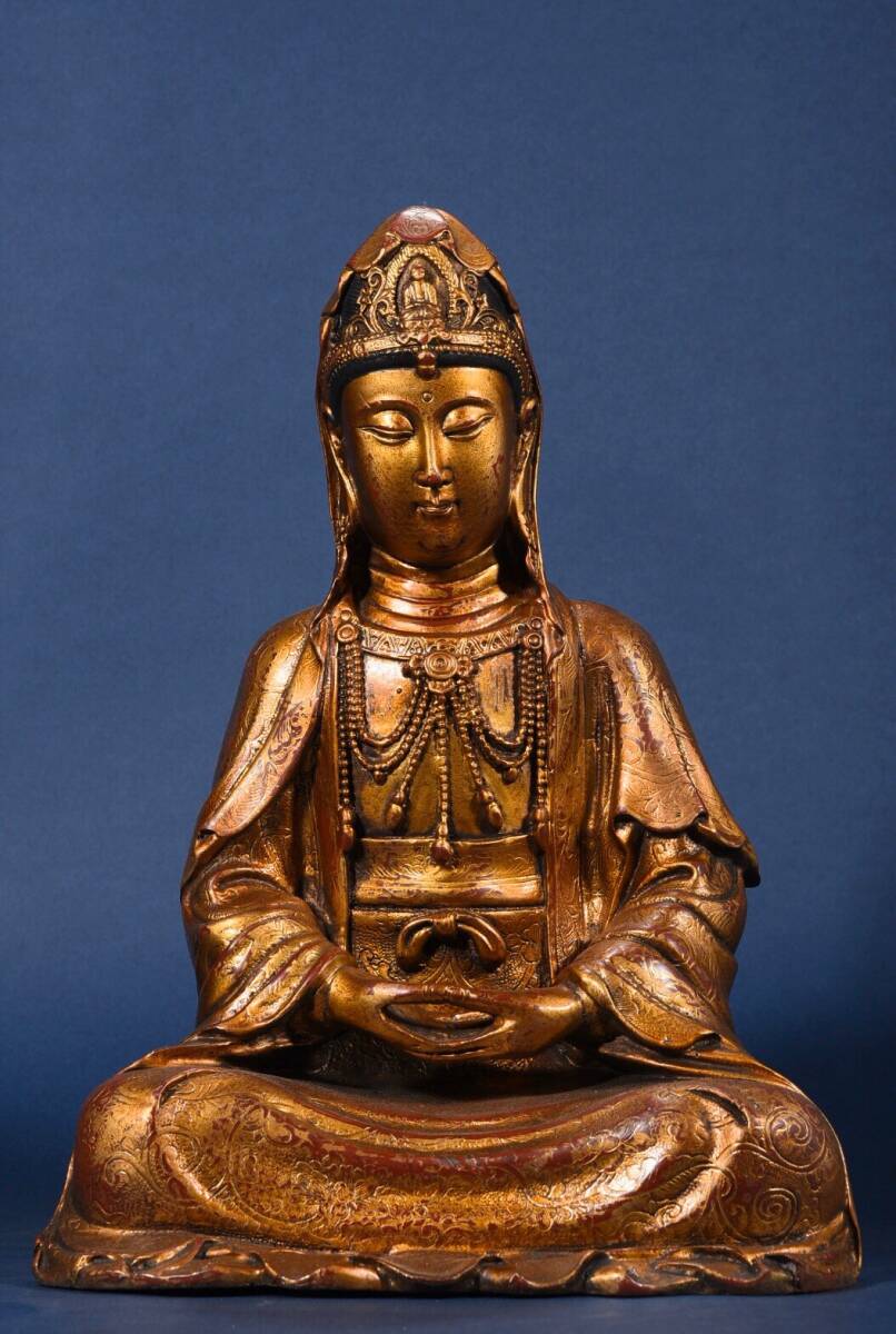 - 『館蔵珍品 銅製 泥金 觀音菩薩像』置物 賞物 貴重物品 収蔵品 中国古美術