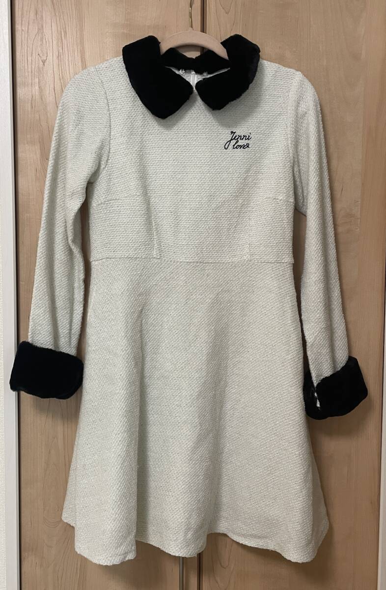 > ●【中古品】160㎝ 女の子用 JENNI love ジェニー ラメ入り ワンピース ファー付 アイボリー レディース