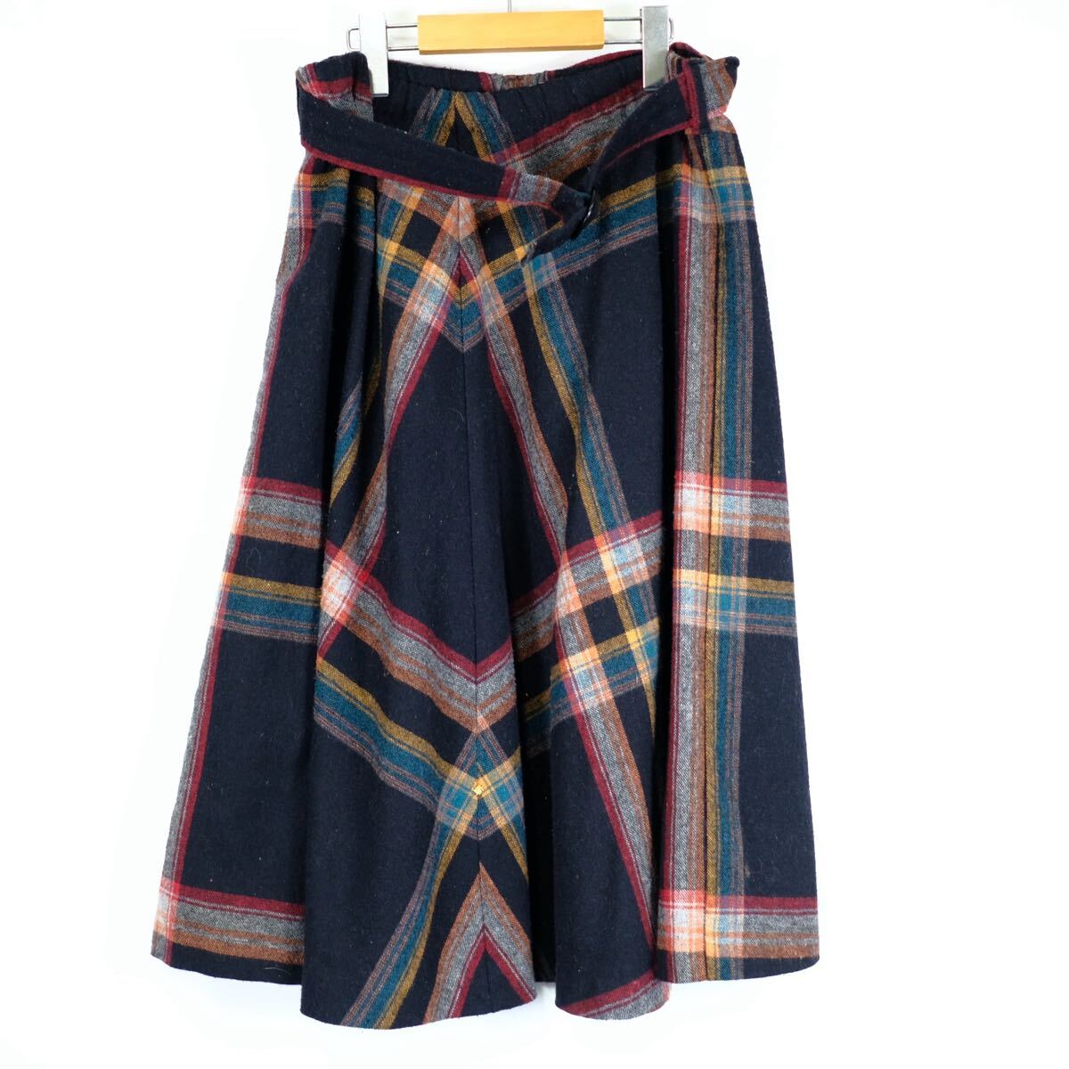 - 1990s ビンテージ タータンチェックウールスカート フレア 膝丈 古着屋 黒 ブラウン アート デザイン ユーロ イギリス USA