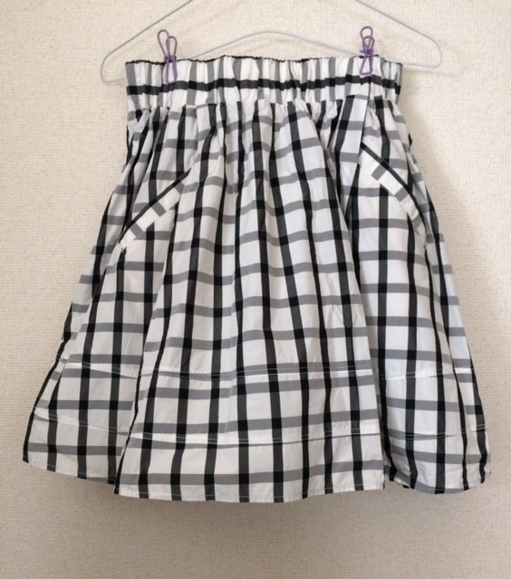 - ★未使用★ 白×黒 ウエストゴム シャカシャカ チェックギャザースカート