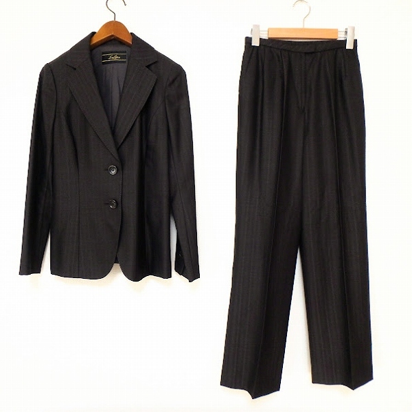 > #anc レリアン Leilian パンツスーツ 9 こげ茶 ツーピース ストライプ シルク混 イタリア製生地 レディース [937760]
