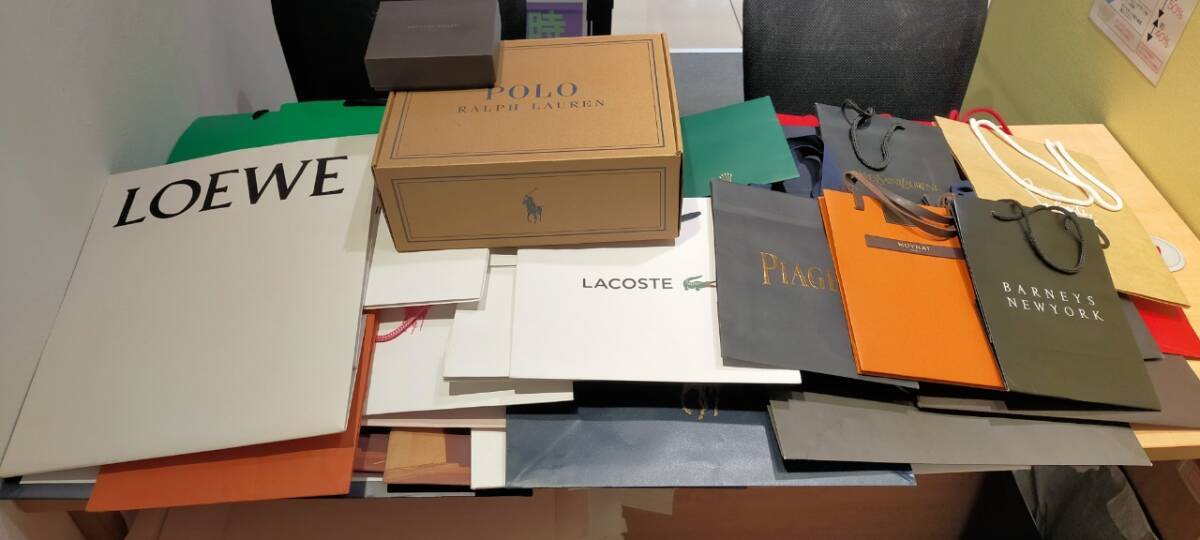 > 52点セット ブランド ショップ袋 & 空箱 BOTTEGA Cartier LOEWE OMEGA PIAGET ROLEX V&A VALENTINO YSL ショッパー 紙袋 おまとめ まとめて