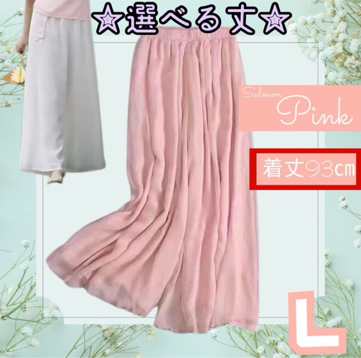 - ガウチョパンツ フレアパンツ シフォン スカンツ ワイドパンツ ロング ピンク 丈93cm