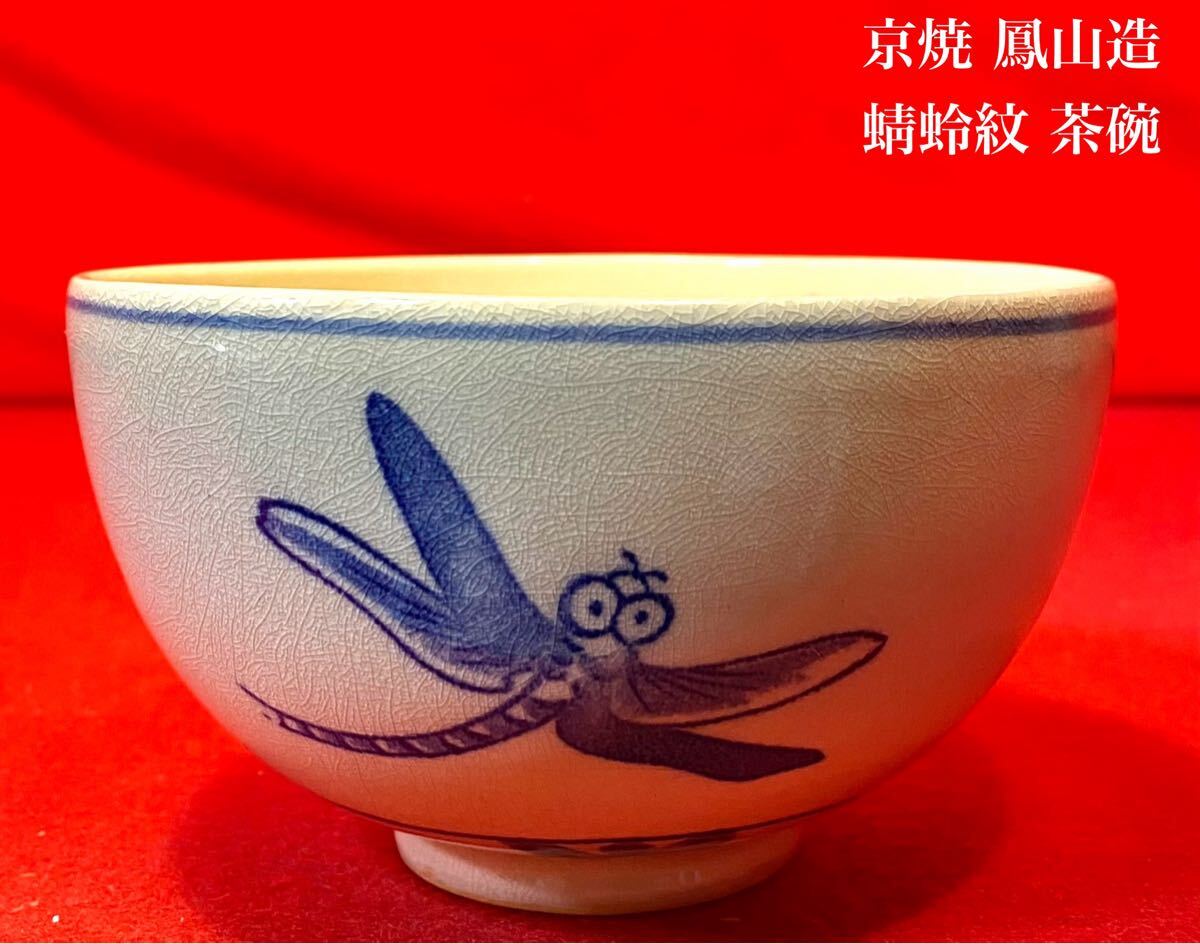 - 茶道具 『京焼 「鳳山」在名 蜻蛉紋 茶碗 横田鳳山』茶の湯 茶事 茶会 抹茶碗 茶器 秋の茶道具 とんぼ トンボ 抹茶碗