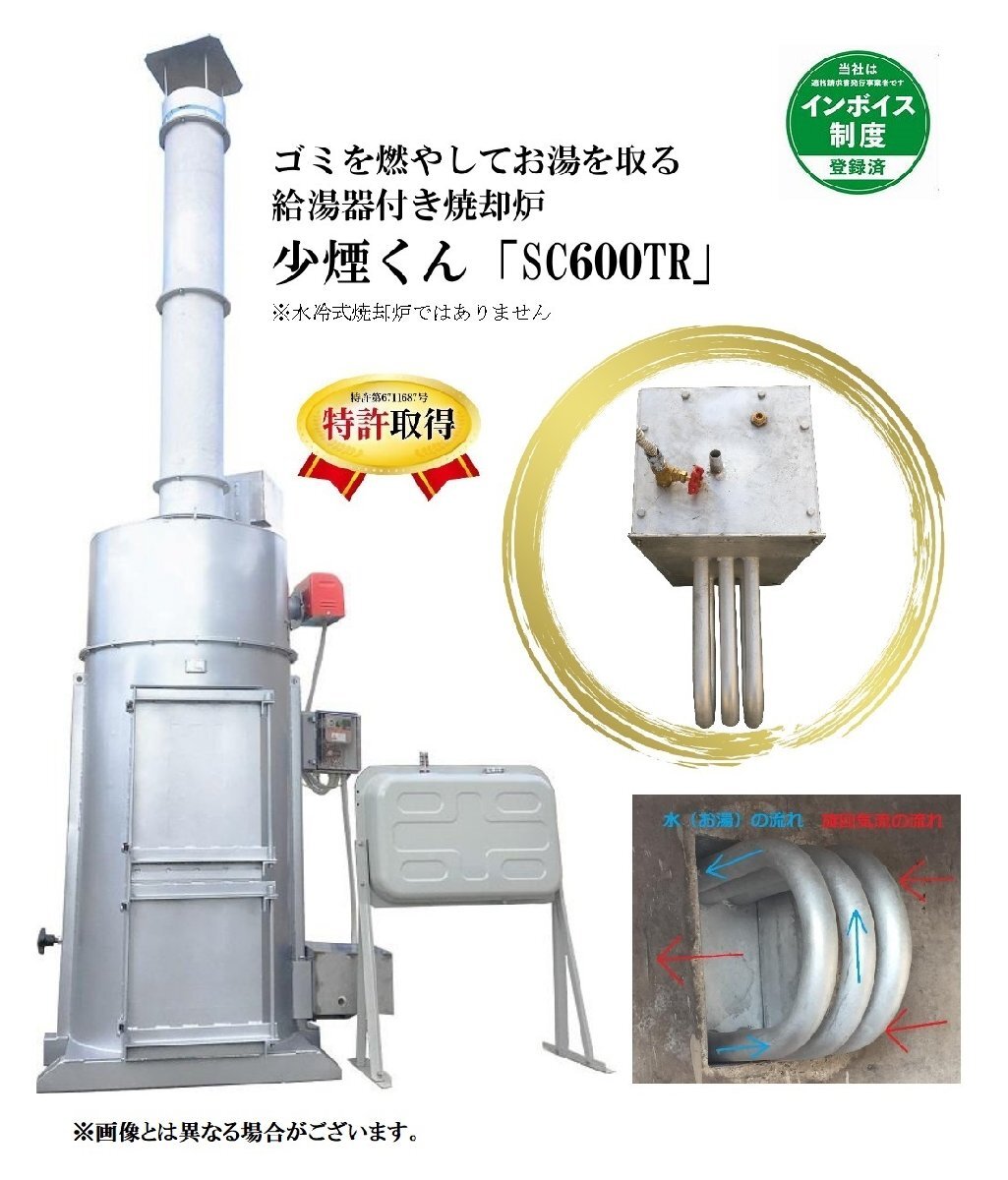 - 少煙くん SC-600TR【特許取得済み】・ゴミを燃やしてお湯を取る焼却炉・業務用・小型焼却炉・耐熱・届出不要