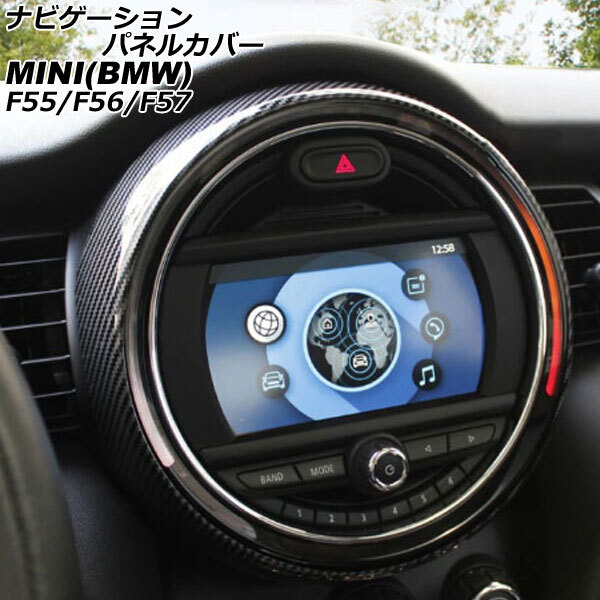 > ナビゲーションパネルカバー MINI(BMW) F55/F56/F57 6.5インチナビ搭載車用 2014年~2018年 ブラックカーボン ABS製 AP-IT3178-BKC