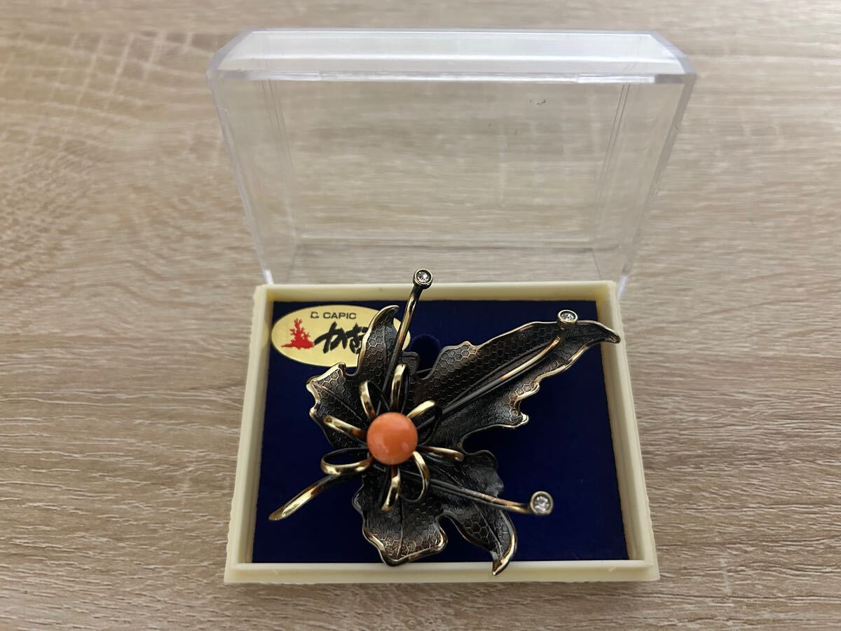 - 新品 かさまつ 珊瑚 ブローチ アンティーク ヴィンテージ