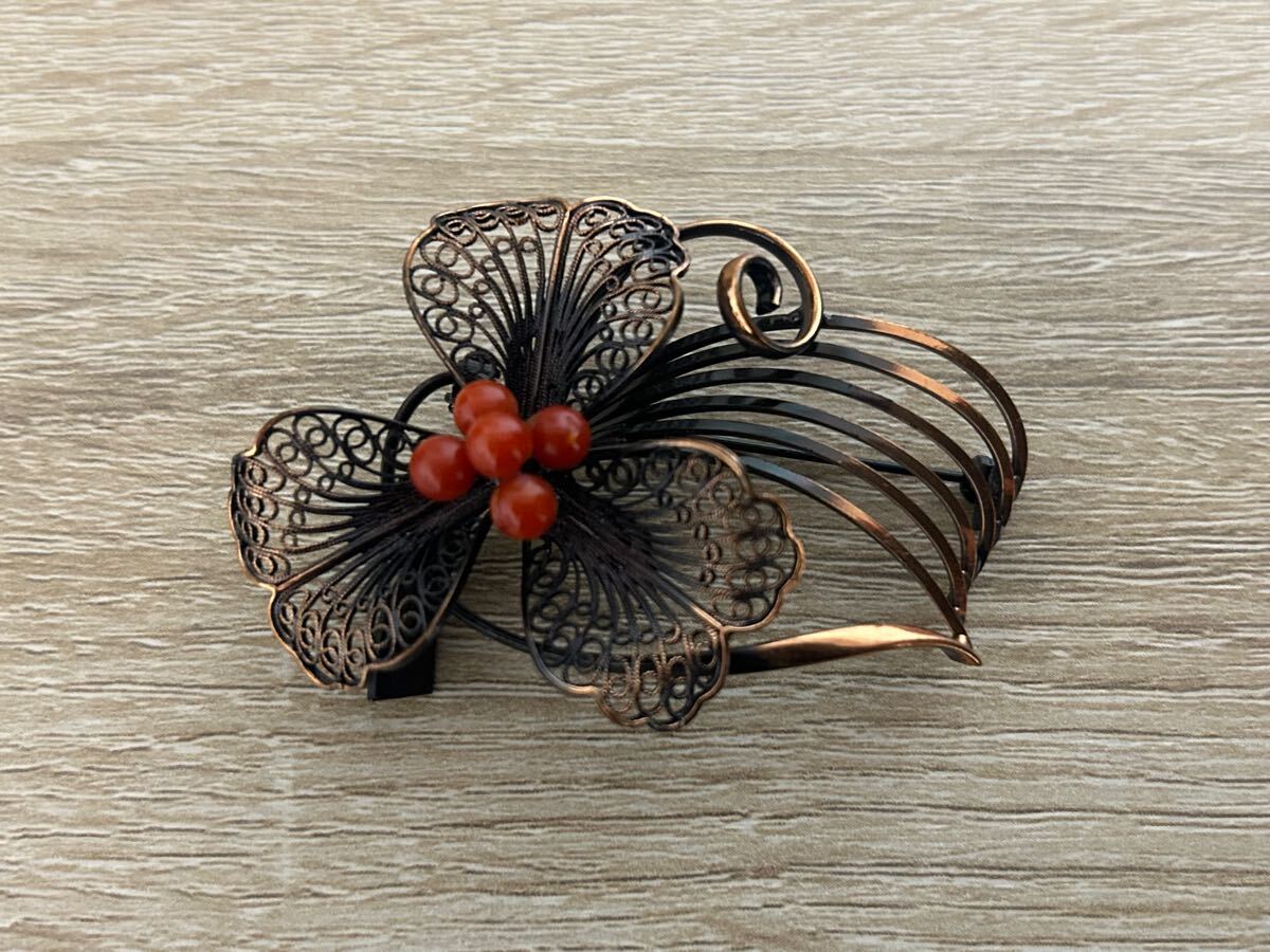 - 難あり 赤珊瑚 かさまつ ブローチ ヴィンテージ