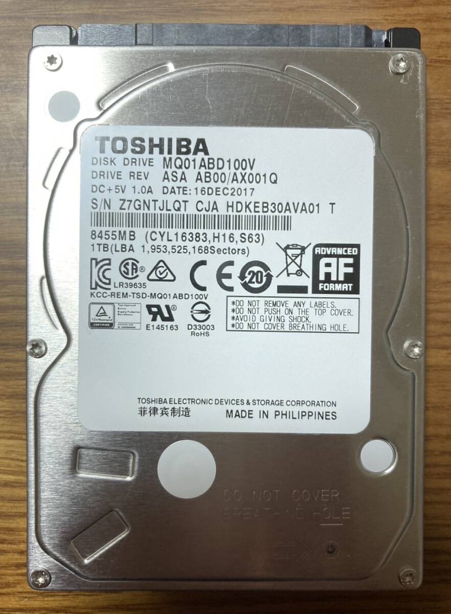 > 【使用時間:小】東芝 Toshiba MQ01ABD100V 2.5インチ HDD 1TB(使用時間:440時間未満!)
