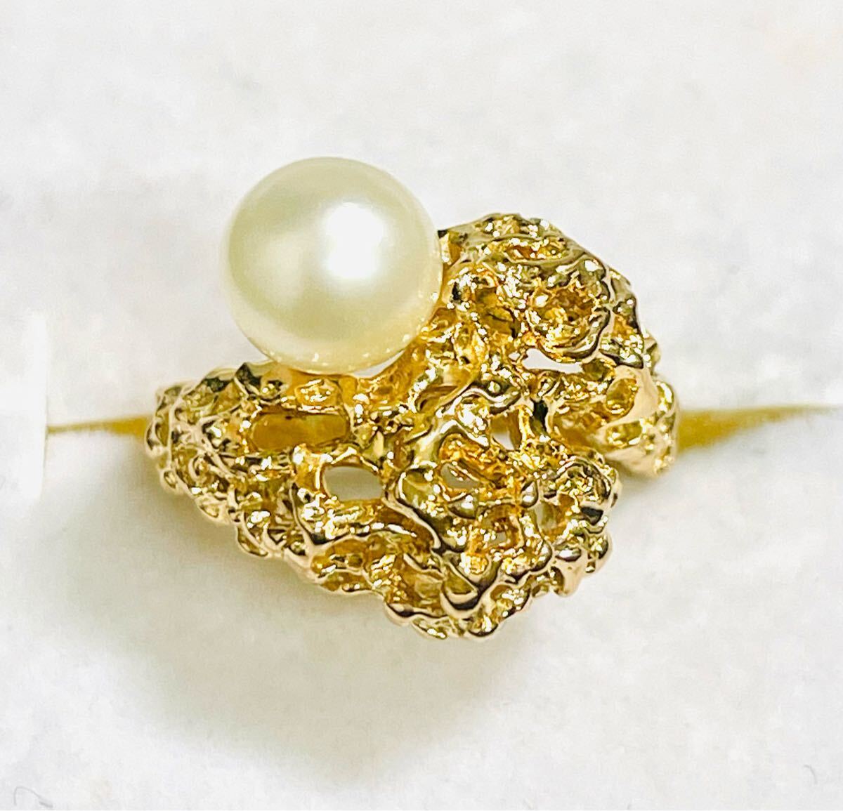 - ☆K18 パール7.2mm付きリング 8号☆