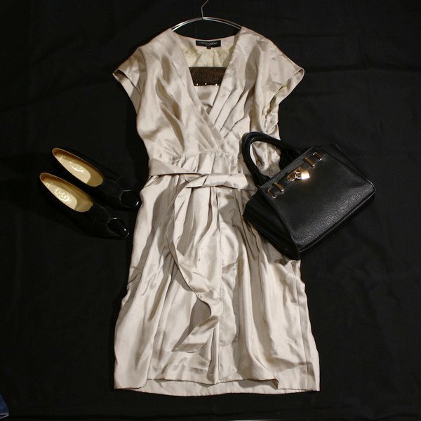 > 美品 UNITED ARROWS ユナイテッドアローズ 綺麗め 共布ベルト付き スパンコール とろみ ワンピース 40号 L 春 夏 25B04