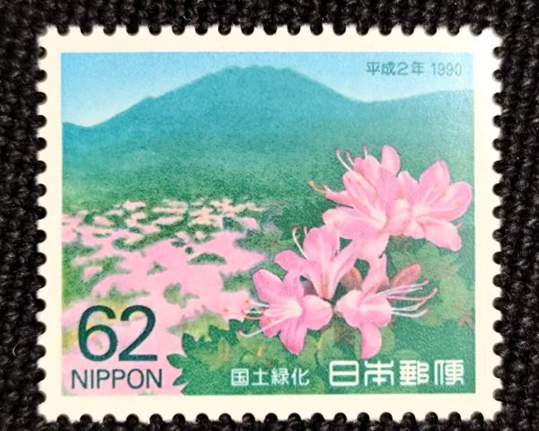 > [25041207]【国土緑化シリーズ・長崎県】単片 耳紙付「ウンゼンツツジと雲仙岳」62円 1990年発行 美品