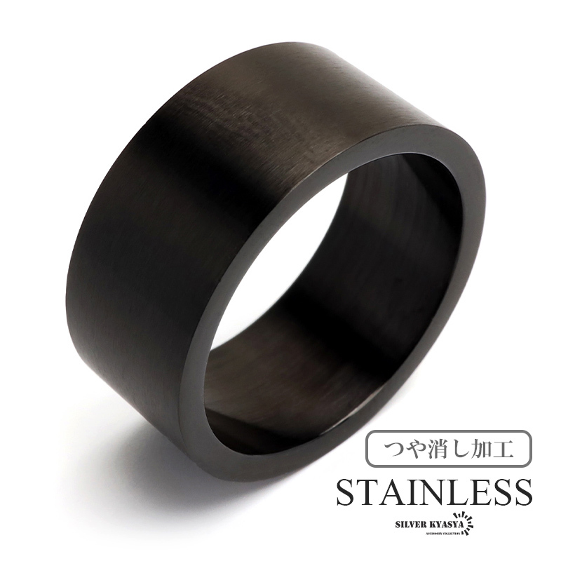 - (26号) ステンレス リング メンズ 指輪 つや消し マット ワイドリング 幅10mm ブラック 黒 金属アレルギー対応