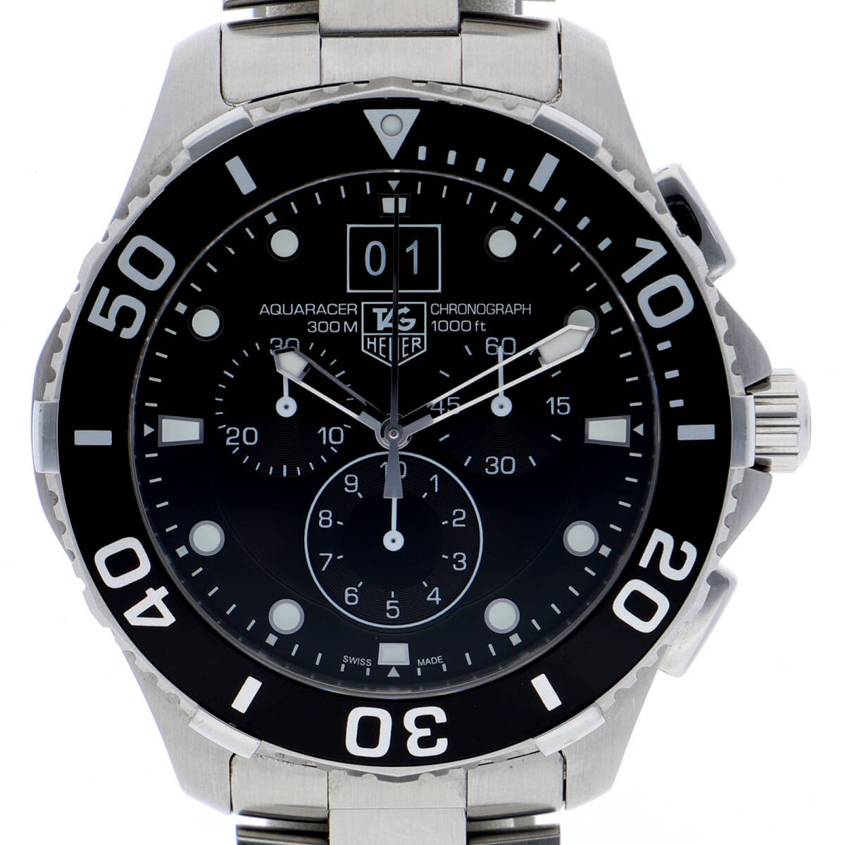 > TAG HEUER タグホイヤー CAN1010 アクアレーサー ブラックダイヤル SS クオーツ メンズ【128261】