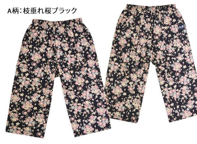 > サクラスタイル別注 日本製和柄ステテコ◆衣櫻 A柄(枝垂れ桜ブラック) Lサイズ SA-1710 和柄 和風 リラックス パンツ ショーツ 国産
