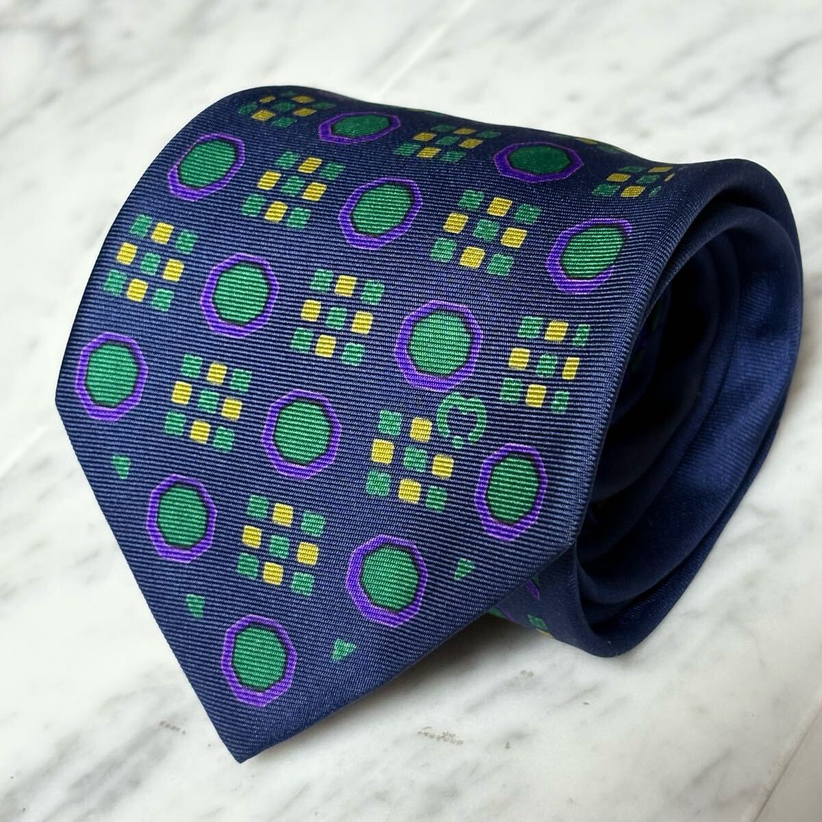 - 999円~ ミラショーン ネクタイ ネイビー 小紋 ワンポイントロゴ (B4)