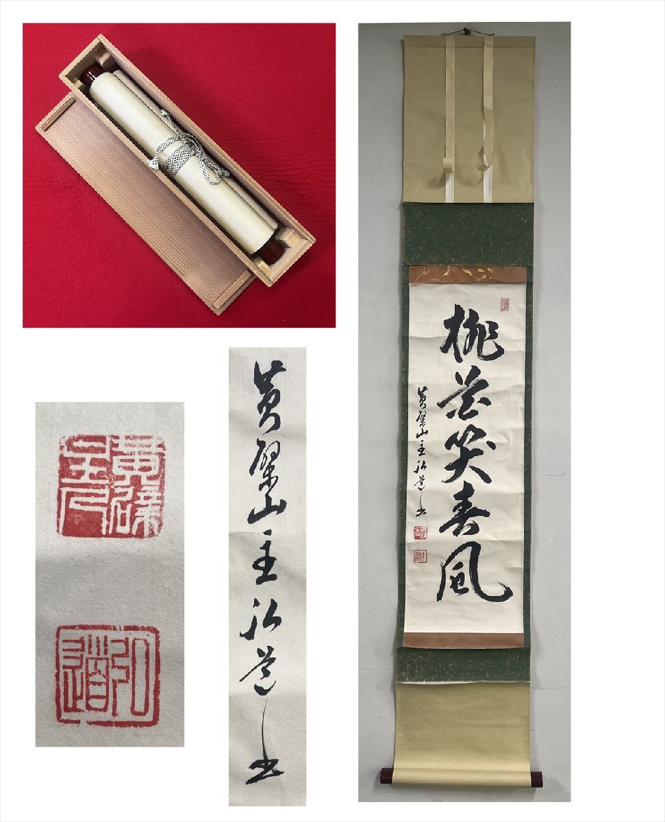 - 【千寿】黄檗山 万福寺 中村弘道 桃花笑春風 一行 紙本 a421◆箱 茶道具 古美術 時代品 掛軸 100019145-2