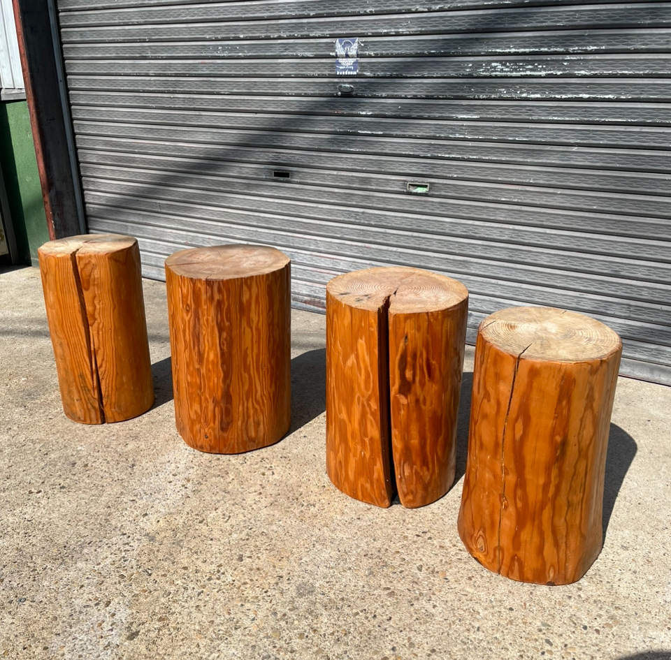 - 無垢材 天然木 丸太 イス スツール オブジェ 台 年輪 原木スツール ウッドチェア 切り株 花台 4個セット